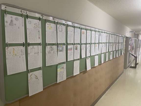 すでに職員室前の廊下には、各学級5名ずつ選出された『自分の好きな本紹介シート』が掲示されています。どれも興味を引く内容で、私もかつて読んだ本を目にし、もう一度読んでみようという気持ちになりました。代表以外の子供たちの紹介シートも、各教室の前に掲示されていますので、保護者会で来校された際にはじっくりご覧になってください。